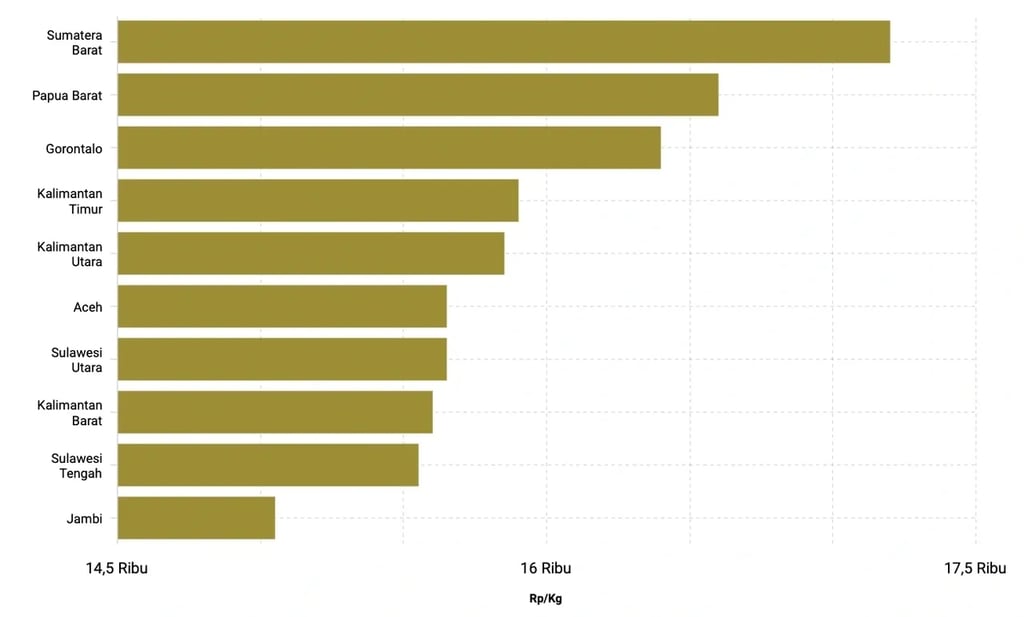 Pada 5 Desember 2023 lalu, harga beras kualitas medium I di pasar modern Sumatera Barat menjadi yang termahal se-Indonesia. Harga jualnya Rp 17.200 per kg. Dibandingkan sebulan lalu, harga saat ini lebih tinggi. Bulan lalu tercatat hanya pada angka 13.300 per kg.