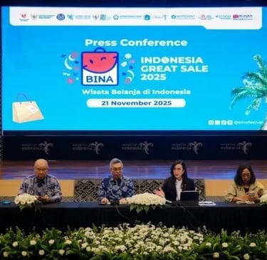Menteri Pariwisata (Menpar) Widiyanti Putri Wardhana meluncurkan program BINA Indonesia Great Sale 2025 pada 21 November 2025 lalu. BINA Indonesia Great Sale 2025 akan berlangsung pada 18 Desember 2025 hingga 4 Januari 2026. Program ini bertujuan meningkatkan kunjungan wisatawan mancanegara sekaligus mendorong mereka berbelanja di Indonesia. Pekan belanja “BINA Indonesia Great Sale 2025: Wisata Belanja di Indonesia Aja” merupakan kerja sama antara Kementerian Pariwisata, Himpunan Peritel dan Penyewa Pusat Perbelanjaan Indonesia (HIPPINDO) yang melibatkan lebih dari 380 perusahaan, 80.000 gerai, dan 800 merek serta didukung Asosiasi Pengelola Pusat Belanja Indonesia (APPBI) yang menaungi lebih dari 400 mal di 24 provinsi.