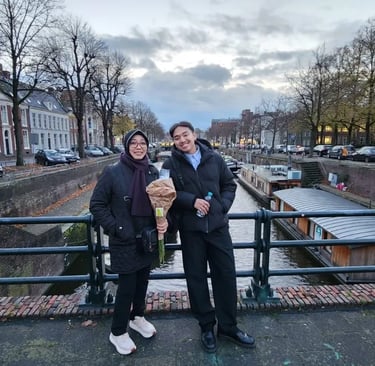 Muhammad Nabeel Rizkee, SE, B.Sc, alumni University of Groningen yang memperoleh double degree dari Universitas Indonesia dan Groningen, berfoto di salah satu sudut kota Groningen (Foto: Muhammad Rahmad)
