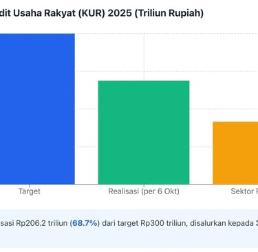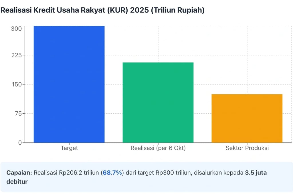 Komitmen pemerintah terukur jelas: plafon KUR 2025 sebesar Rp300 triliun dengan realisasi Rp206,2 triliun (hingga 6 Oktober) kepada 3,5 juta debitur. Alokasi sektor produksi mencapai Rp124,7 triliun—melampaui target 60 persen. Program SAPA UMKM mengintegrasikan data dari 48 kementerian/lembaga, menjadi fondasi kebijakan berbasis bukti.